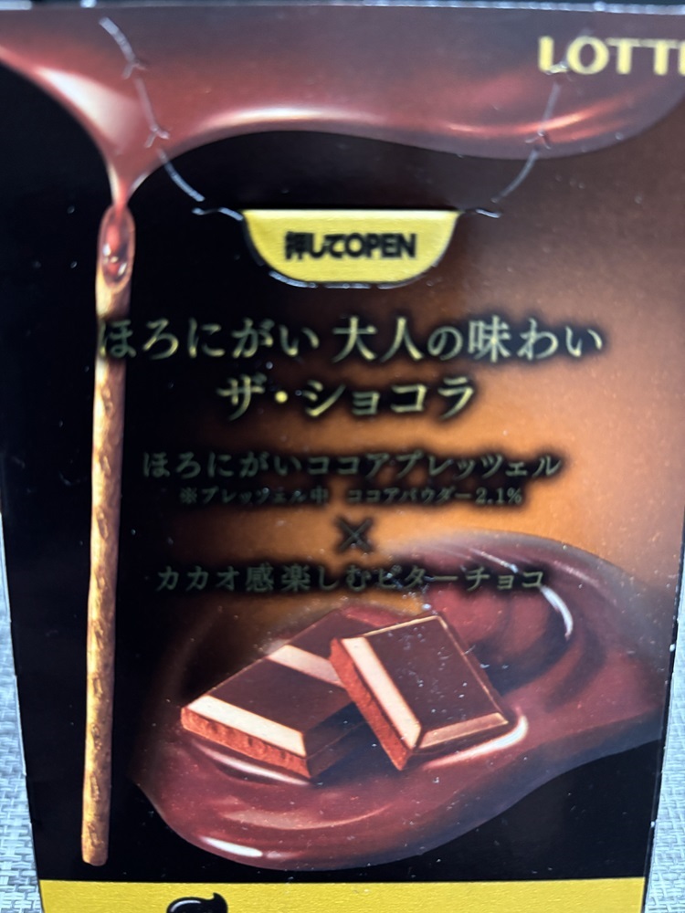 トッポ ザ・ショコラを口にした瞬間にまず感じるのは、一般的なチョコレート菓子とは少し異なる落ち着いた印象です。軽快な甘さを前面に出すのではなく、ほろにがさを軸に据えた味づくりが、最初の一口から伝わってきます。この第一印象が、いわゆる「大人向け」という評価につながっている理由のひとつでしょう。