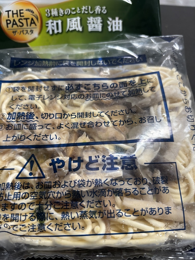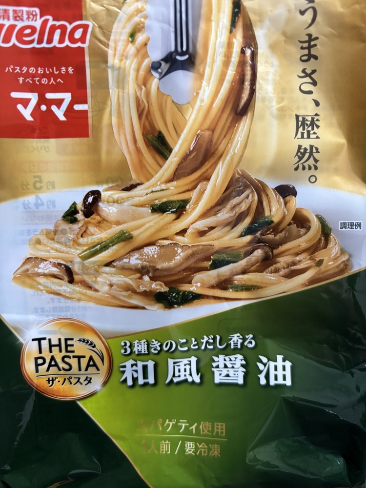 マ・マー THE PASTA「3種きのことだし香る和風醤油」を手に取ったとき、まず意識に入るのは、和風パスタとしての方向性がはっきりしている点である。電子レンジで温める前から、パッケージ表記を通じて想像されるのは、洋の要素よりも和の香りを前面に押し出した一皿だということだ。実際に調理を始めると、加熱とともにかつお節の一番だしの香りが立ち上がり、食卓全体にやさしく広がっていく。